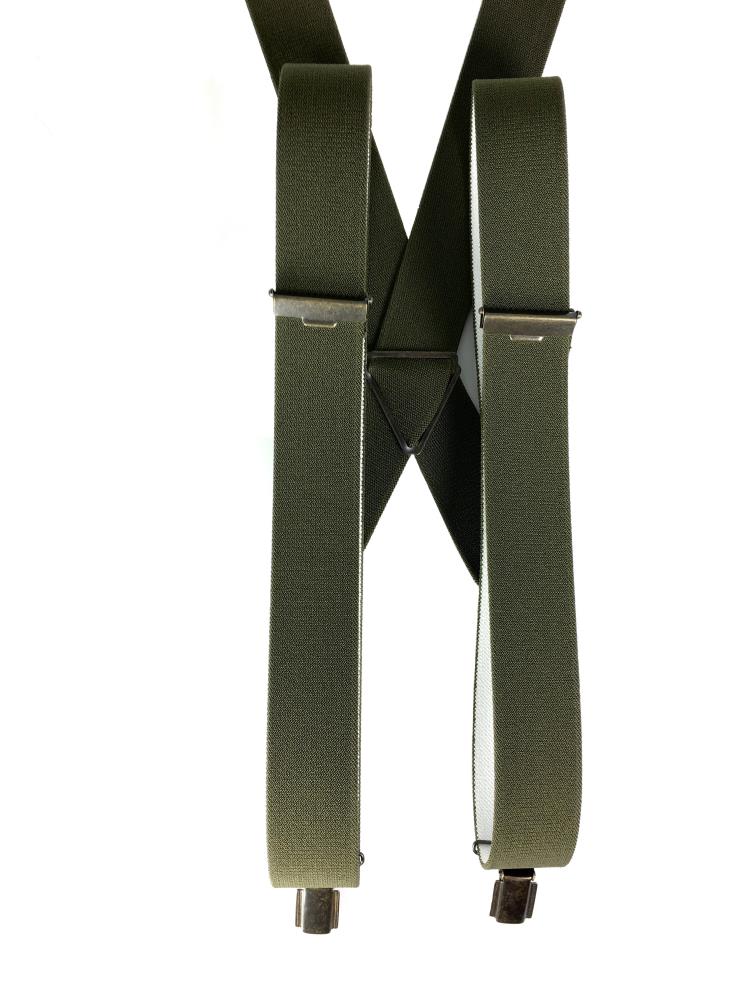 Bretelles de couleur kaki dotées de pinces ajustables.