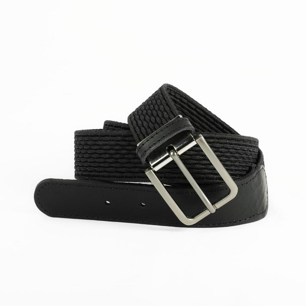 Composition : Sangle tissu élastique, cuir, boucle zamak et métallique. Longueur : 120 cm. Largeur : 3.5 cm. Coloris : Noir.