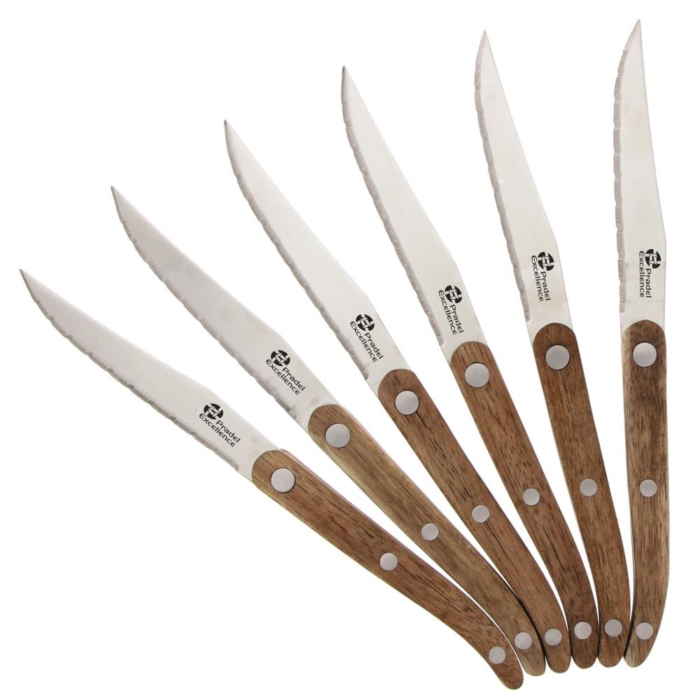 Composition : manche en bois d'acacia. Lame : acier. Longueur lame : 11,5 cm. Vendu en coffret de 6 couteaux avec une boîte de rangement en bois. Lavage à la main conseillé.