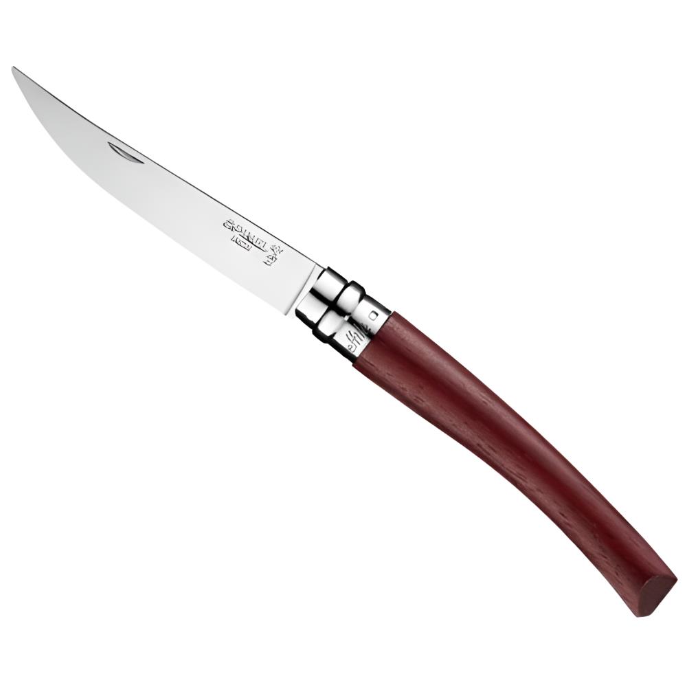 Le couteau de poche Effilé N°10 d'Opinel offre un design unique rehaussé par un élégant manche en padouk.