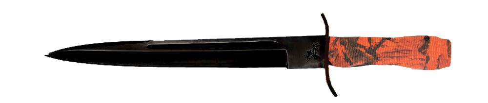 La dague de chasse Karan Orange 26cm de Verney-Carron est dotée d'un manche camouflage orange. Elle possède une lame en acier noire et un étui en nylon renforcé qui en font un outil idéal pour vous accompagner lors de vos parties de chasse.