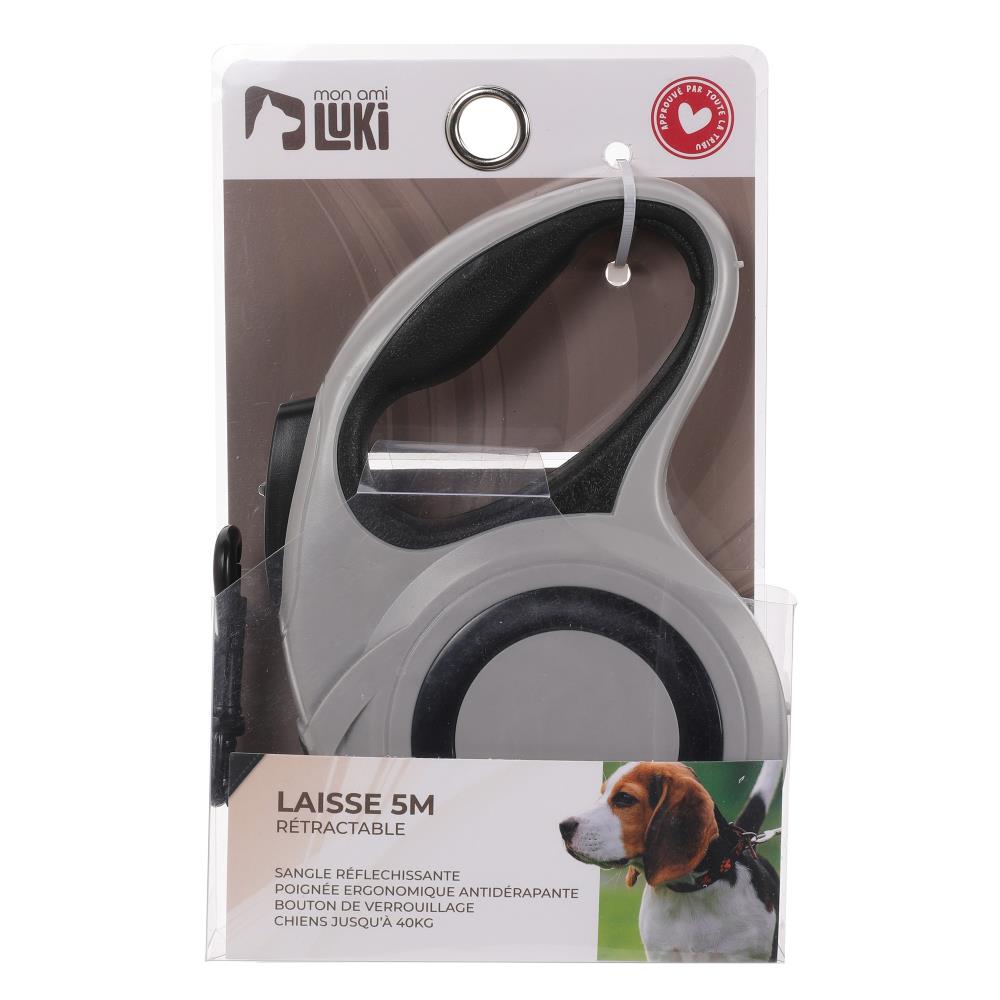 LAISSE RETRACTABLE SANGLE GRISE 5M >20KG