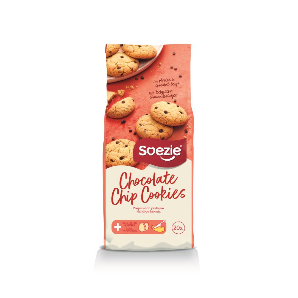 La préparation pour cookies de Soezie vous permet de réaliser facilement une vingtaine de cookies au chocolat, en ajoutant simplement des œufs et du beurre.