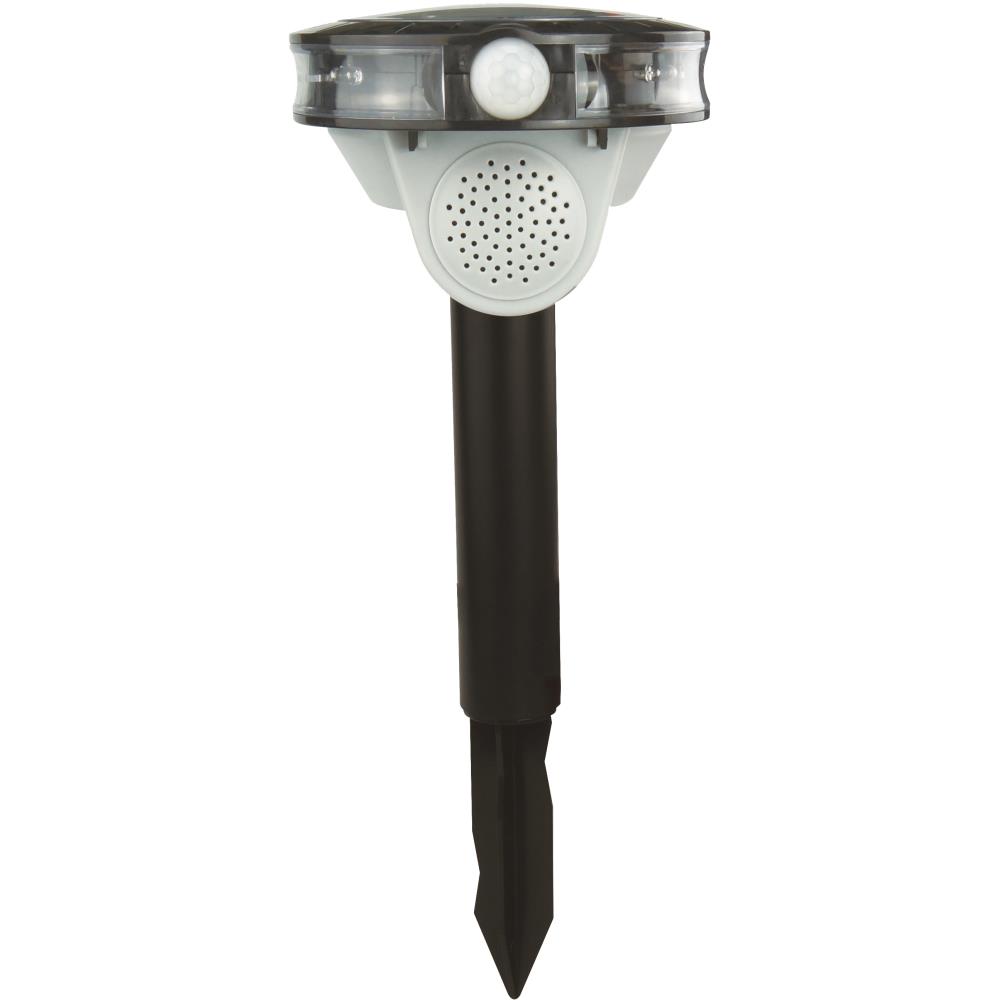 L'effaroucheur sonore et lumineux à énergie solaire est efficace contre les chats, chiens, oiseaux, le gibier et autres. Le détecteur possède une portée de 8 mètres sur un angle de 120 degrés. Il peut emmetre trois sons différents : des aboiements, des coups de fusil ou des cris de rapace. Il dispose d'une position jour/nuit pour n'émettre que des flash la nuit et ne pas perturber le voisinage ou atre.