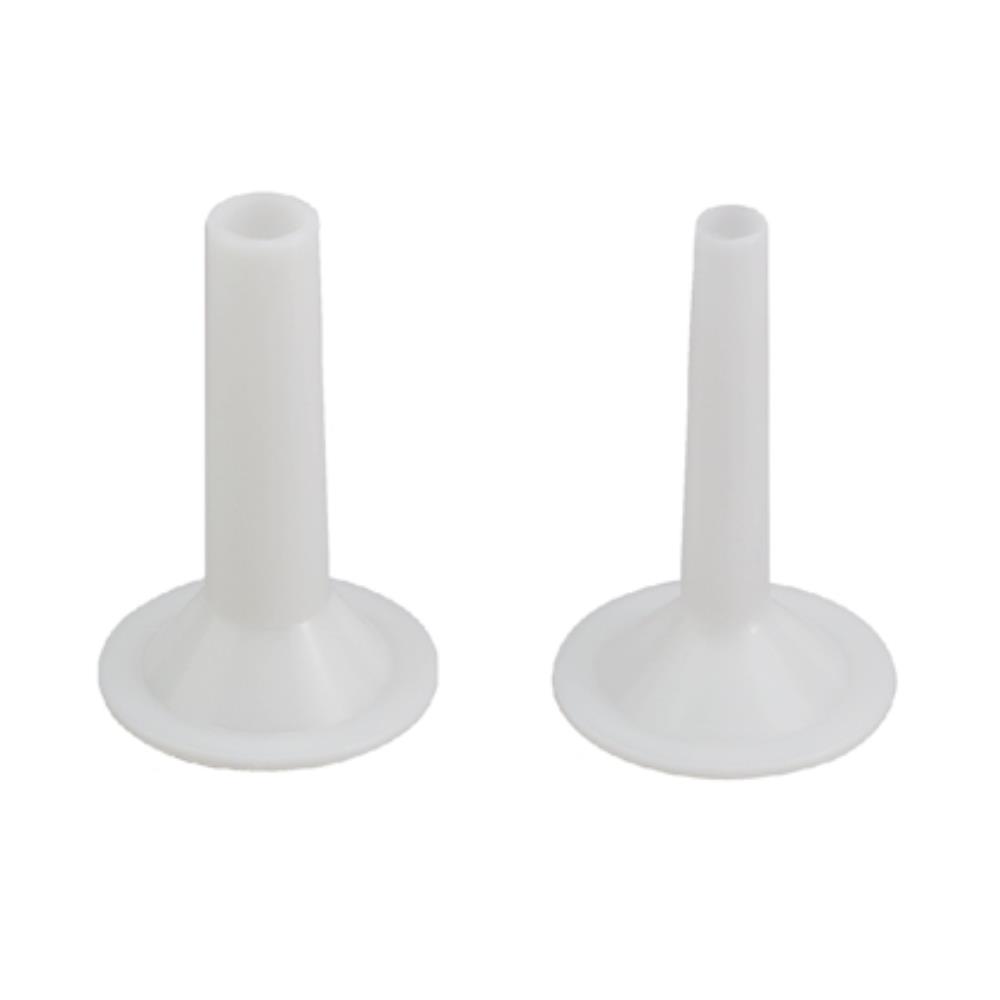 Composition : plastique alimentaire. Diamètre : 15 et 25 mm. Vendus par 2 entonnoirs. Pour hachoir modèle n°12.