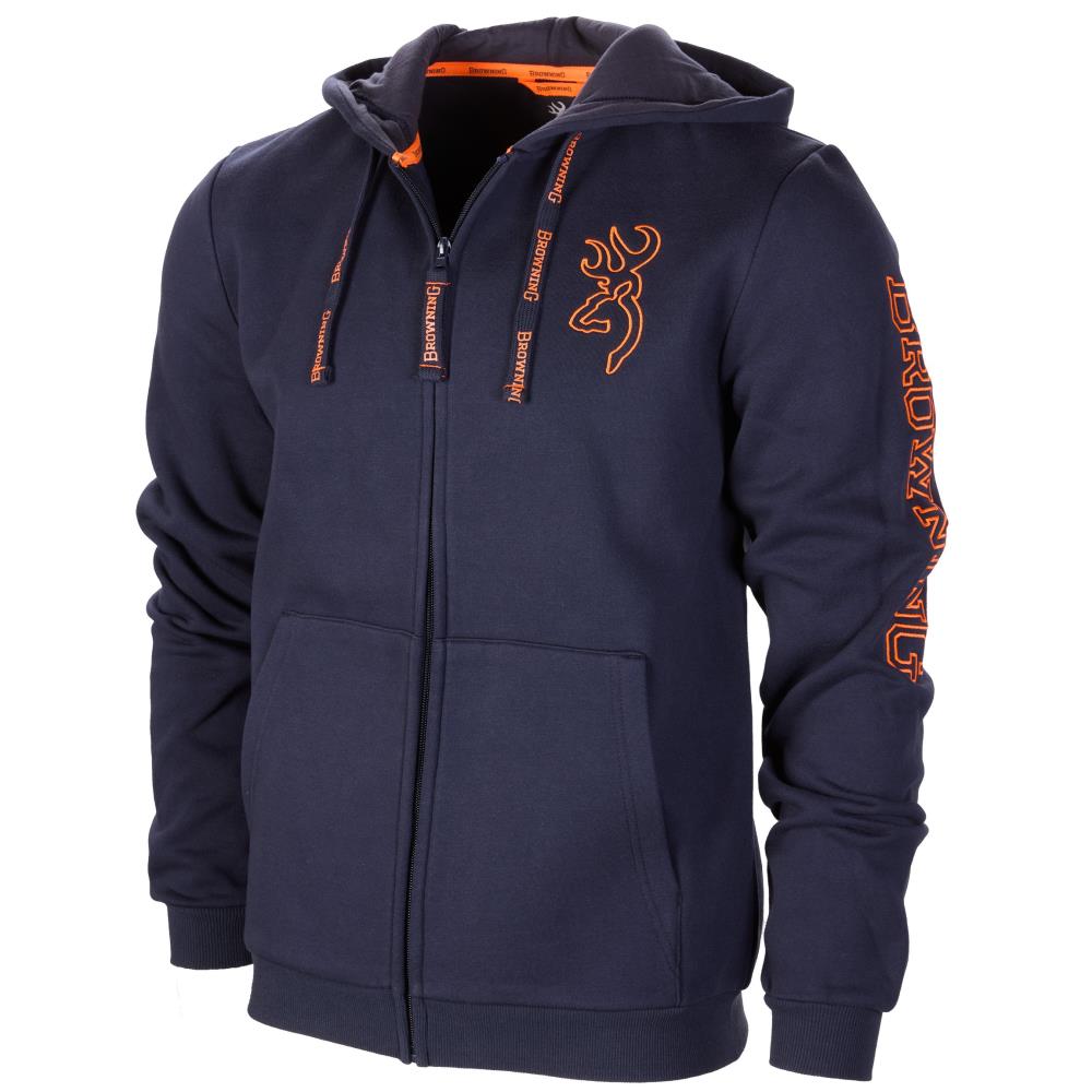 Ce sweat est idéal pour les journées fraîches. La fermeture zippée intégrale permet un enfilage facile et une régulation de la température selon vos besoins. La capuche ajustable avec cordon de serrage offre une protection supplémentaire contre les intempéries. Les poches chauffe-mains apportent un confort supplémentaire, tandis que le logo Browning sur la poitrine et l'inscription sur la manche ajoutent une touche d'élégance discrète.